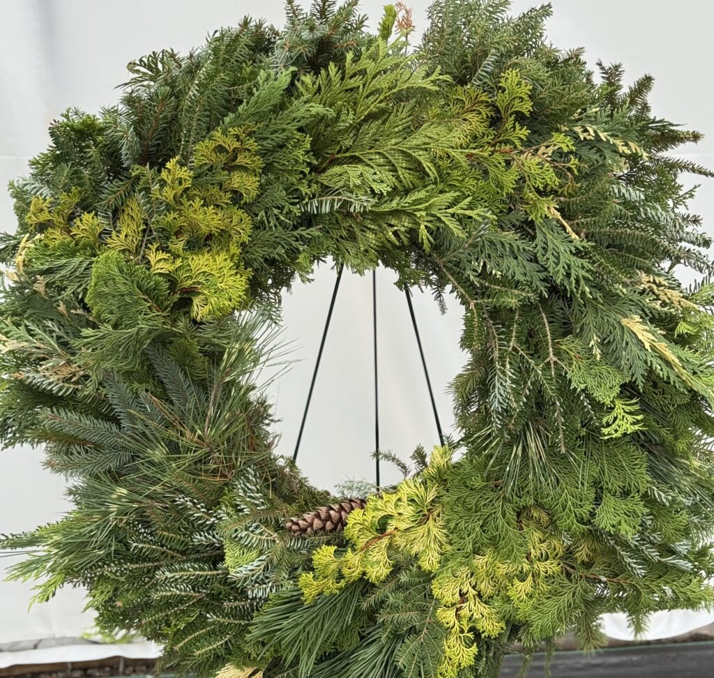 Experience the magic of Christmas with our Evergreen Wreath Peace of Mind, the newest addition for Christmas 2025! Each wreath is meticulously crafted with unique evergreens sourced exclusively from Oregon. These specially-grown pine species from a private farm in Oregon make our wreaths truly one-of-a-kind. Embrace the spirit of the season and bring home a piece of natural beauty with our exquisite Evergreen Wreath Peace of Mind!